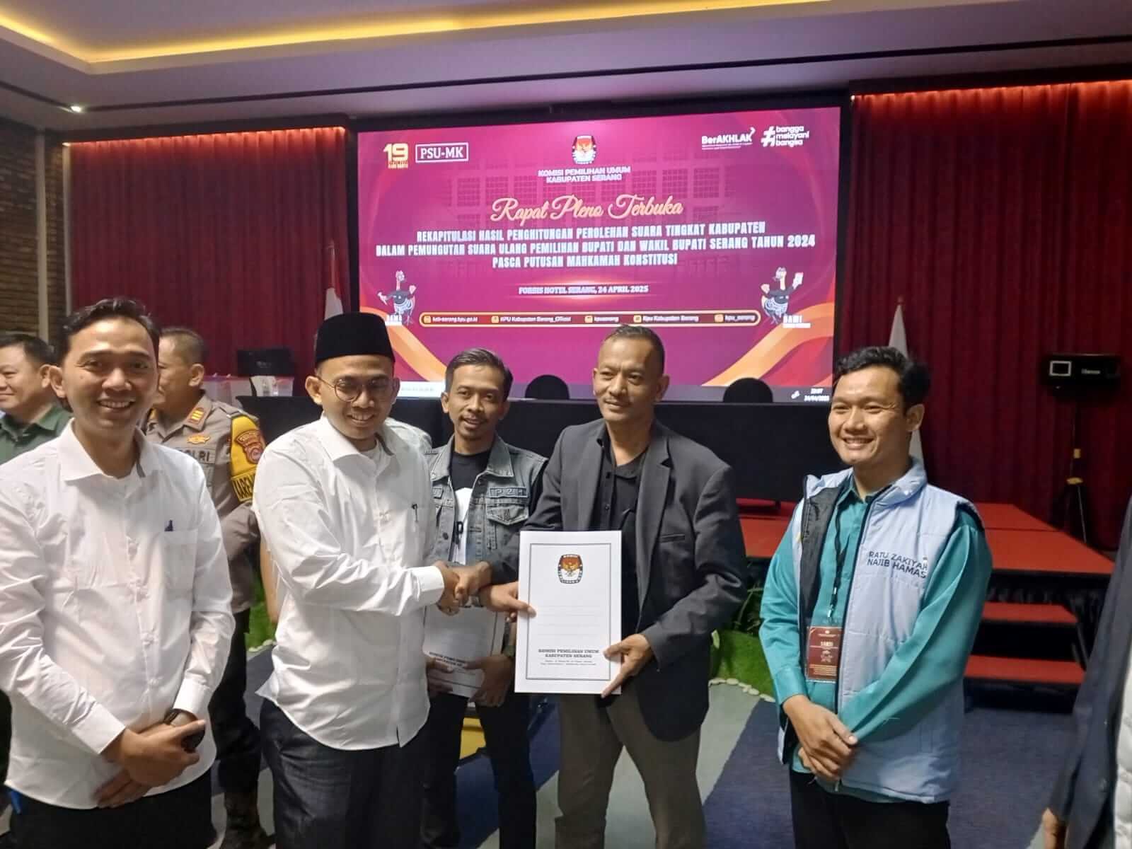 Rekapitulasi PSU Kabupaten Serang: Zakiyah–Najib Peroleh 75,91 % Suara