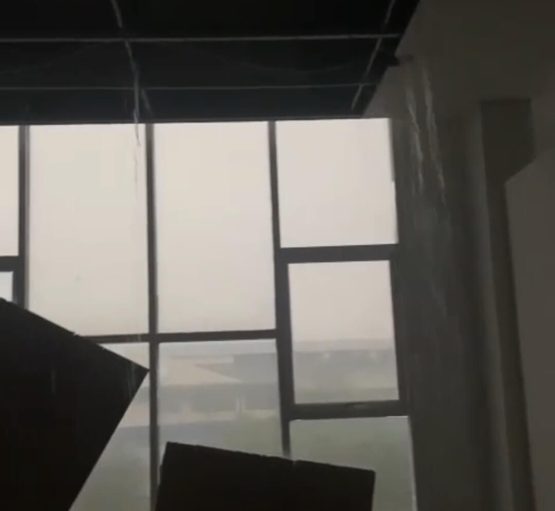BANTEN- Diguyur hujan deras menimbulkan rembesan air hujan celah atap lantai 3 Kantor Pertanahan Kota Serang mengakibatkan plafon Salah satu ruangannya ambruk pada Jum’at (07/7/2023) malam