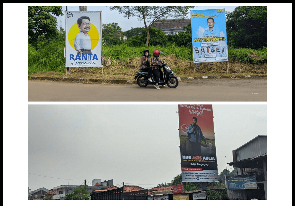 Dapat dilihat, para bakal calon kepala daerah sudah mulai memasang alat peraga. Branding bakal calon di Pilkada Kota Serang berdasarkan pantauan di lapangan, saat ini sudah berseliweran alat peraga bakal calon Walikota Serang.