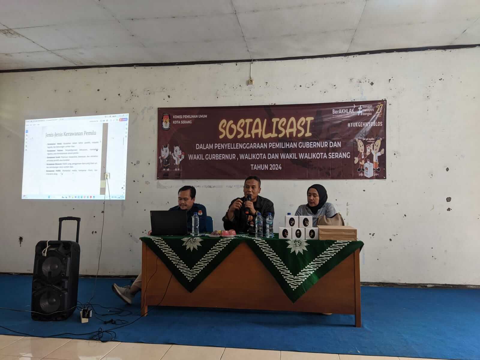 Hal tersebut disampaikan oleh Pegiat Pemilu Nana Subana dalam acara sosialisasi penyelenggaraan Pilkada yang diselenggarakan oleh KPU Kota Serang bekerjasama dengan Jaringan Rakyat Untuk Demokrasi dan Pemilu (JRDP). Acara tersebut diselenggarakan di aula SMA Muhammadiyah Kota Serang, Sabtu, (12/10/2024).