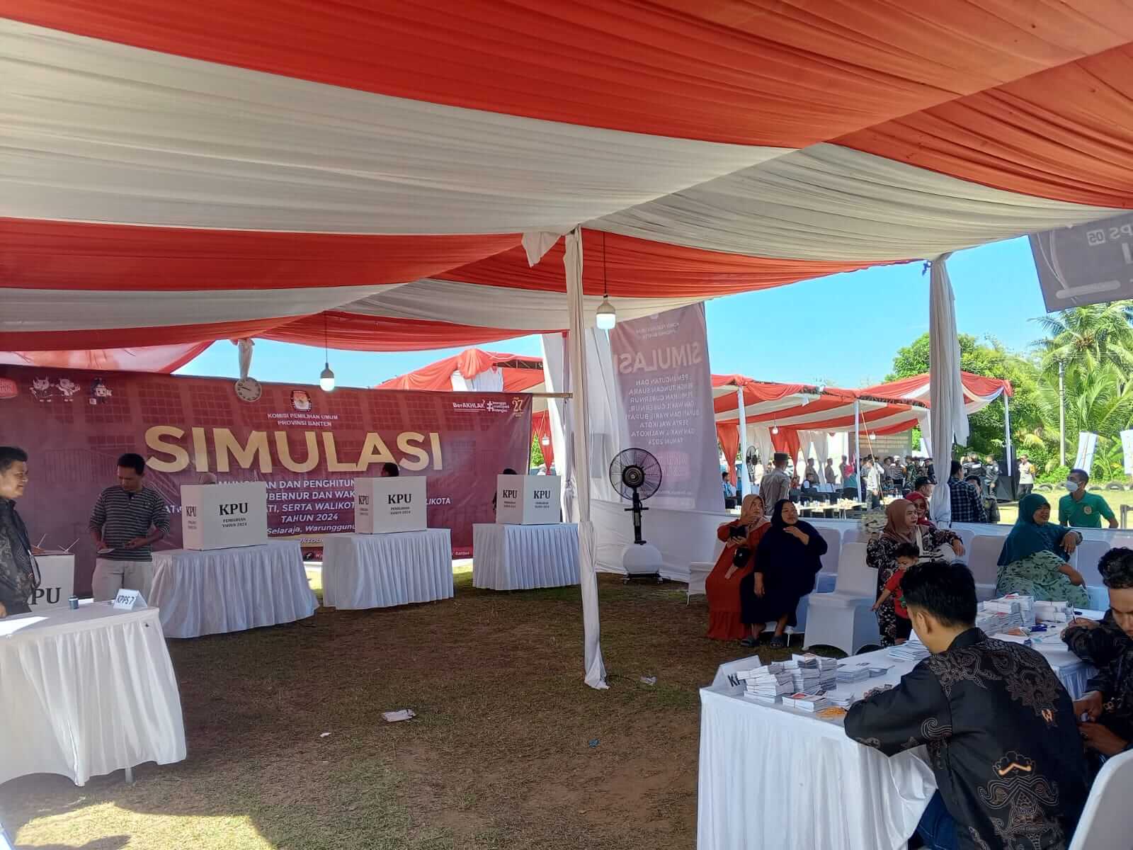 BANTEN – Simulasi pemungutan suara digelar KPU Provinsi Banten di Lapangan Kampung Alun-alun, Desa Salaraja, Kecamatan Warunggunung, Kabupaten Lebak.