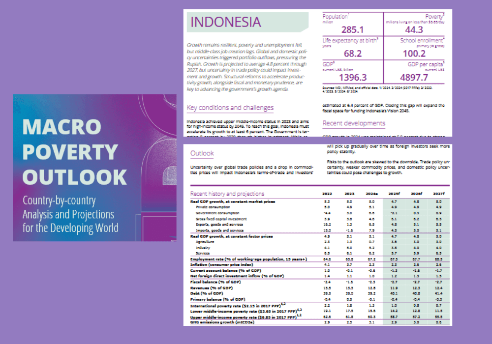 “Meski masih menjadi mayoritas, perkiraan persentase penduduk miskin untuk 2024 itu turun dibanding 2023 yang sebesar 61,8%. Proyeksi tingkat kemiskinan Indonesia pada 2025 pun Bank Dunia perkirakan akan semakin menurun menjadi 58,7%, 2026 menjadi 57,2%, dan pada 2027 menjadi 55,5%,” demikian dikutip dari laporan Macro Poverty Outlook yang dirilis Bank Dunia, Kamis (01/05/2025).